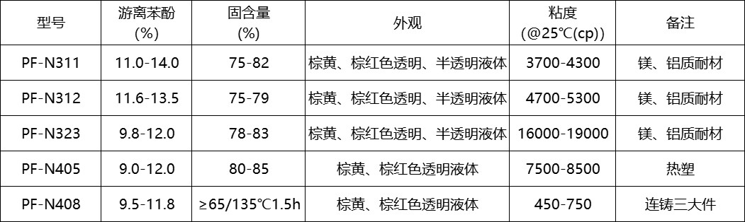 本系列液體酚醛樹脂主要應用于鎂碳磚、滑板、溝料等耐火材料產品;具有穩定性好,加入量低、強度高等優點。